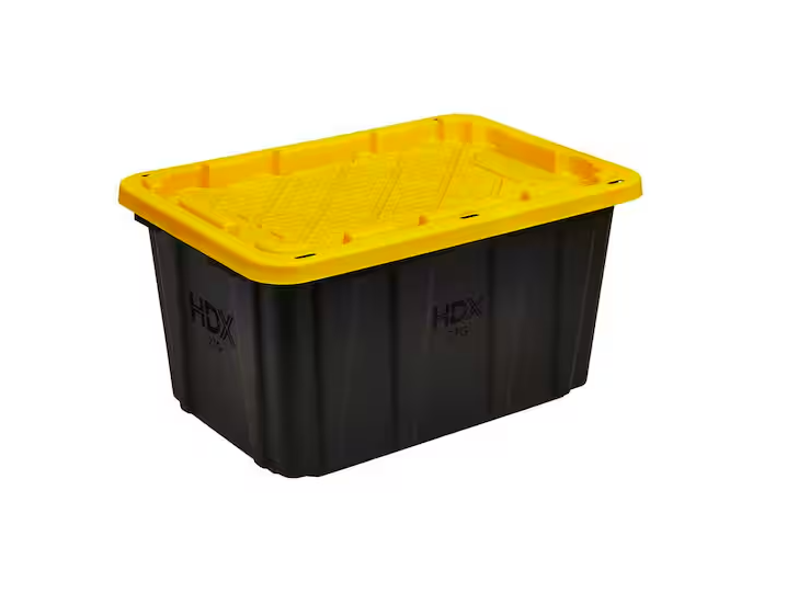 HDX - 27 Gal. Tough Storage Tote in Black and Yellow — $7.98